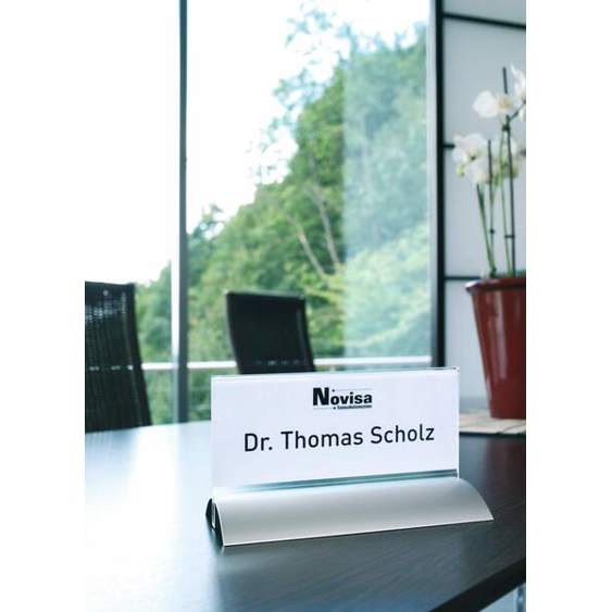 Das Tischnamensschild DURABLE DESK PRESENTER DE LUXE besticht durch seinen eleganten Aluminiumfuß und ist hochtransparent für optimale Lesbarkeit. Es eignet sich hervorragend als Namensschild oder zur Produktkennzeichnung in Hotel, Gastronomie und Catering-Bereichen.