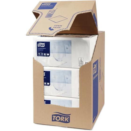 Diese Servietten sind mit dem EU Ecolabel zertifiziert und werden in einer Tork Easy HandlingTM Verpackung geliefert, die leicht zu öffnen, zusammenzufalten und dank praktischer Griffe einfach zu tragen ist.