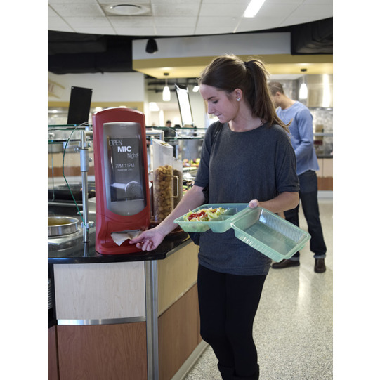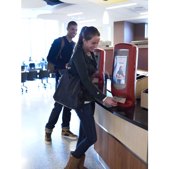 Das AD-a-Glance® Sichtfenster ermöglicht die Bewerbung von Produkten und die direkte Kundenansprache. Die Einzelausgabe reduziert den Verbrauch um bis zu 25% im Vergleich zu herkömmlichen Spendern.